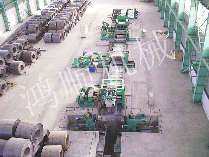 本機(jī)為多對刀片的圓盤剪切機(jī)組,由放料架、送料機(jī)、工作臺、圓盤剪切機(jī)、卷取機(jī)、電氣控制柜組合成一個機(jī)組。用于剪切中炭鋼、普炭鋼、有色金屬的20噸以下的大筒卷板料。按各種用度裁剪各種寬度的窄帶,作為焊管坯料冷軋帶鋼料及其它用途的扳帶,是目前使用進(jìn)口及國產(chǎn)大卷筒扳料必須配備的設(shè)備。